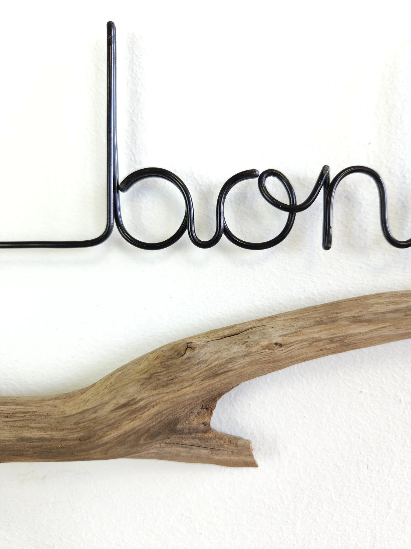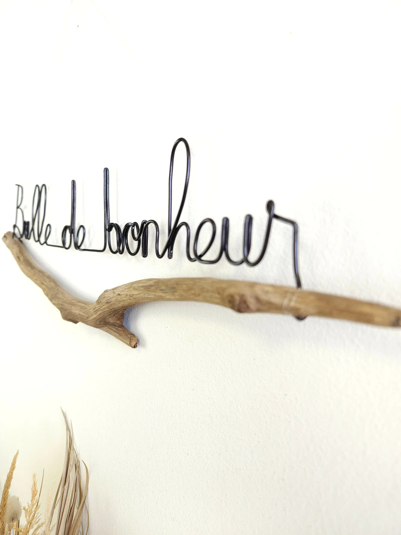 Pas de triche : je travaille les mots à la main, sans machine, en fil d’aluminium noir.