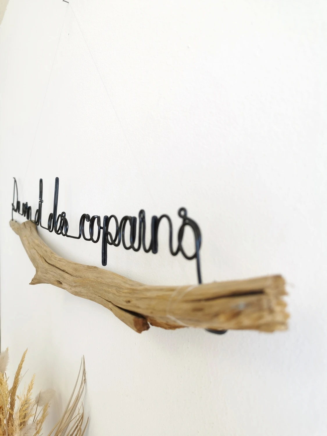 J’ai fabriqué cette déco avec une branche de vieux châtaignier. J’adore particulièrement travailler ce bois imputrescible qui est bien plus difficile et long à travailler que d’autres, mais son rendu est vraiment incomparable. Il peut parfois un peu ressembler à du bois flotté.