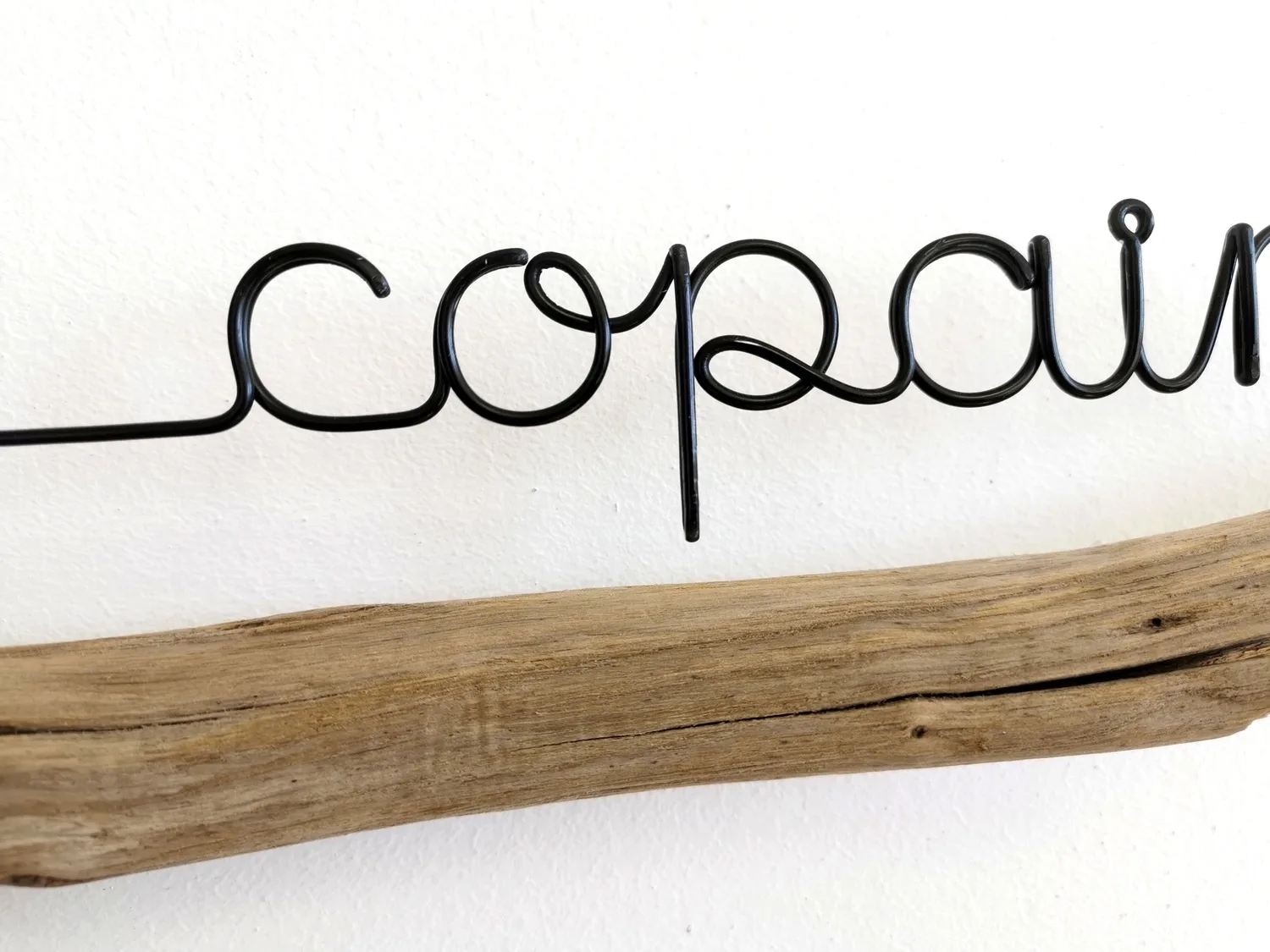 Pas de triche : je travaille les mots à la main, sans machine, en fil d’aluminium noir.