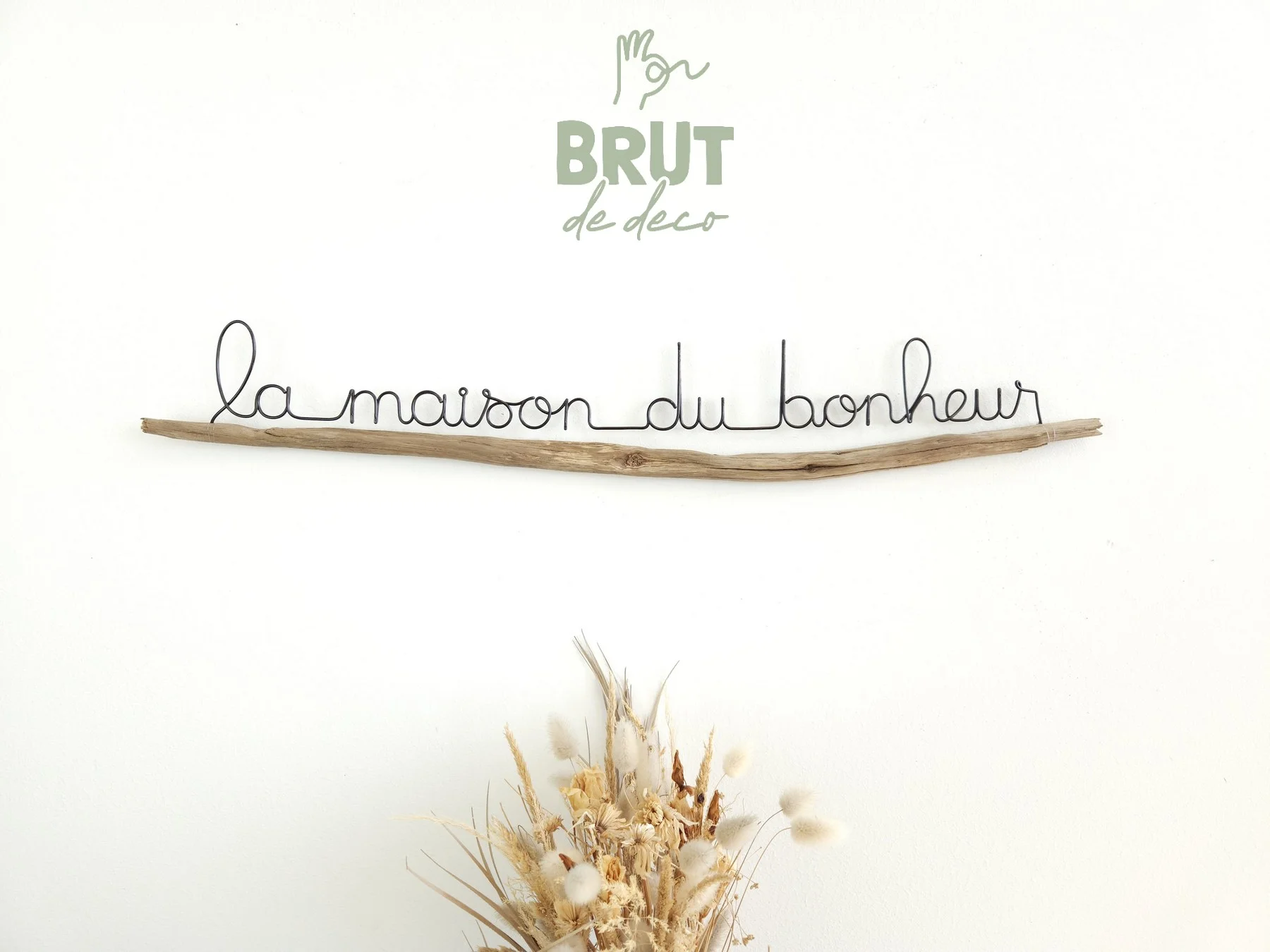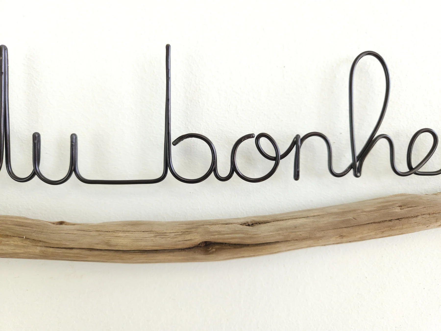 Pour cette déco, j’ai trouvé une belle branche de vieux châtaignier courbé pour qu’elle s’adapte à la phrase.