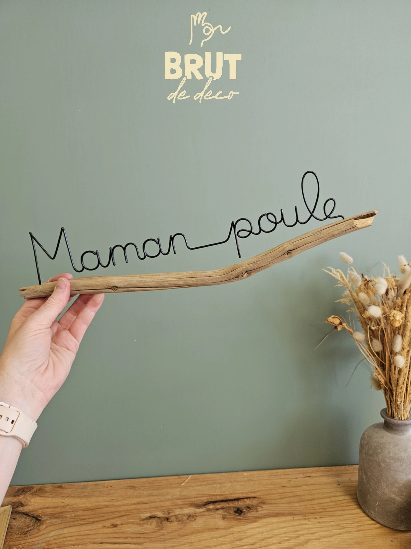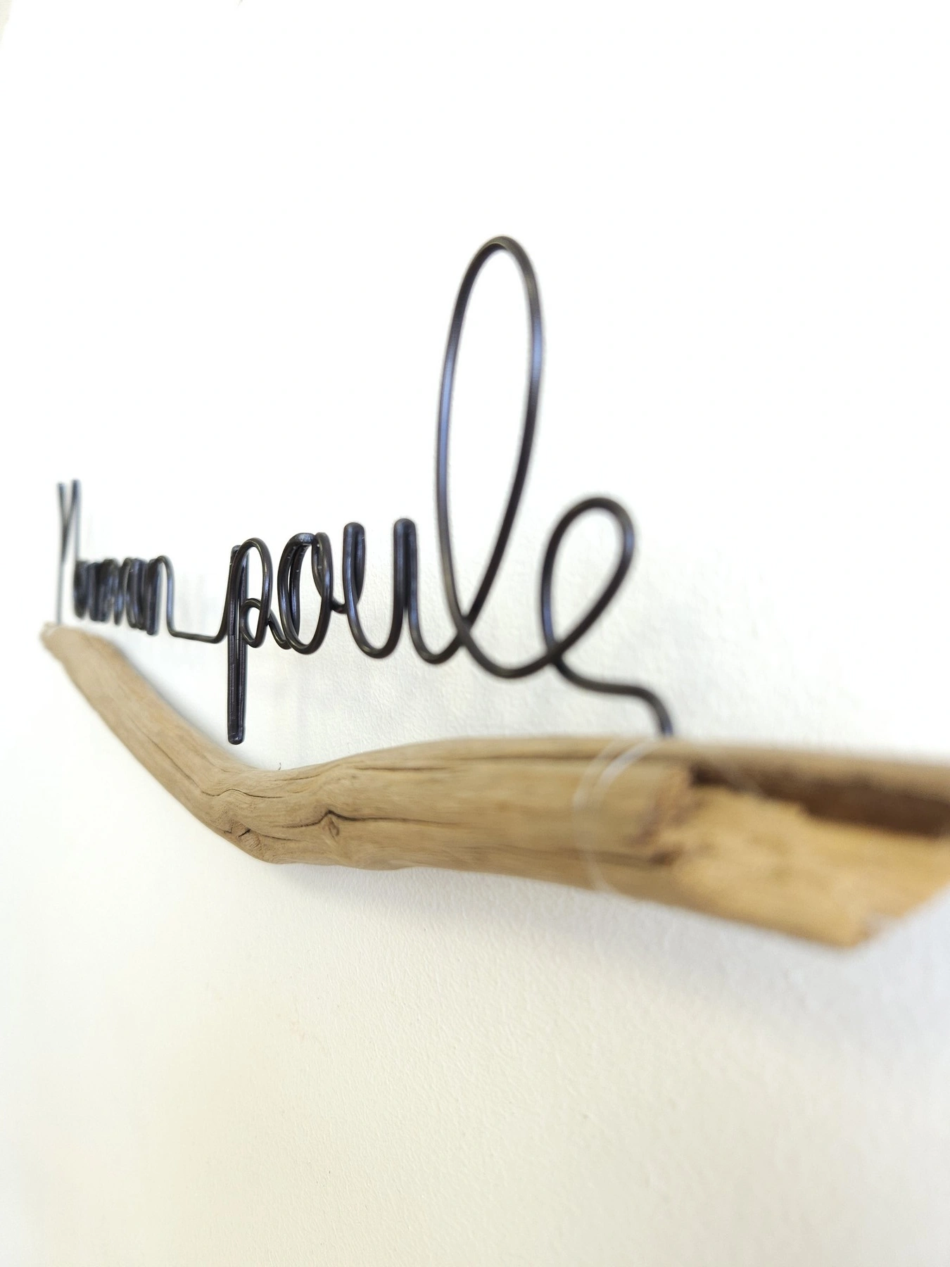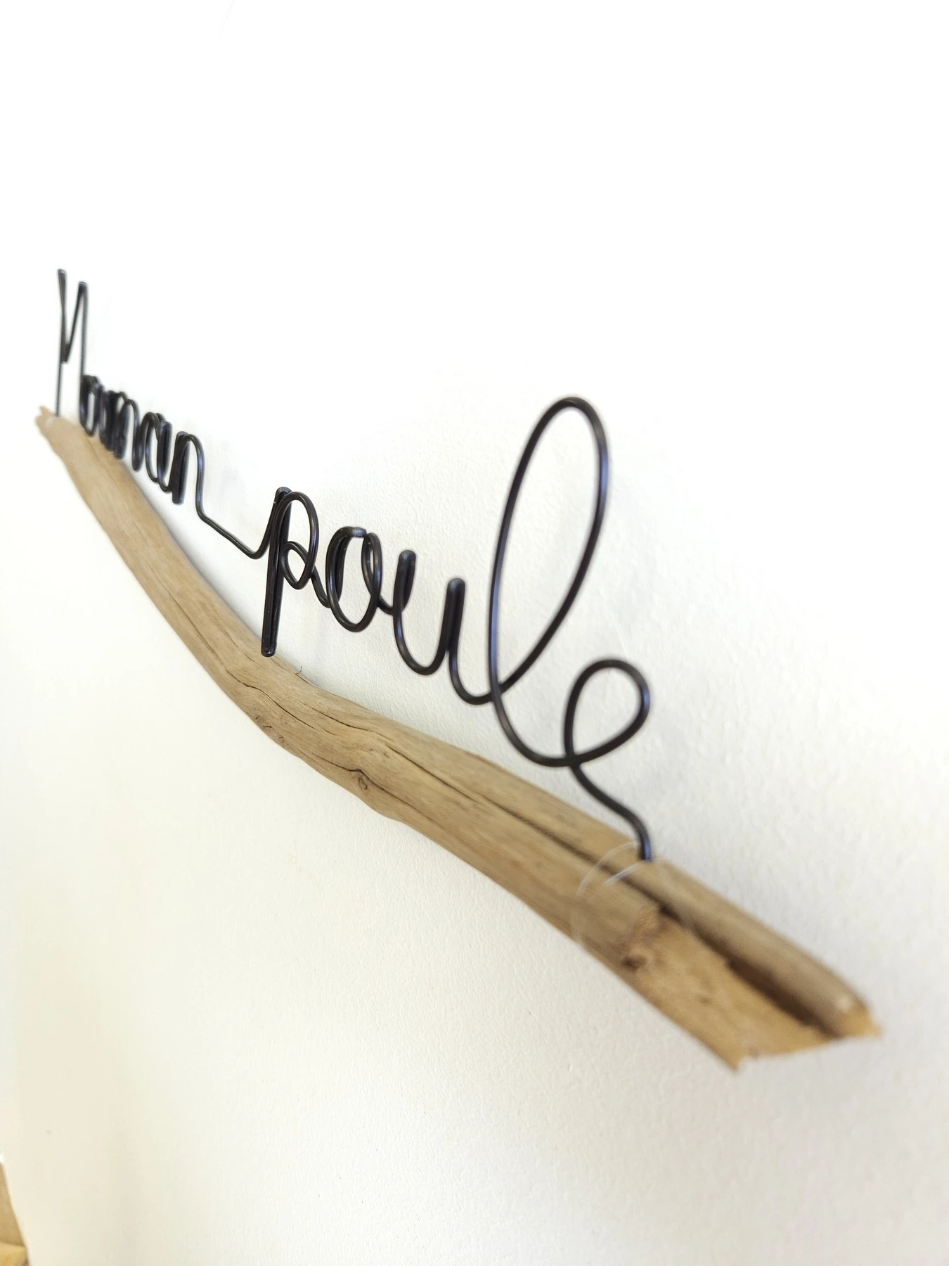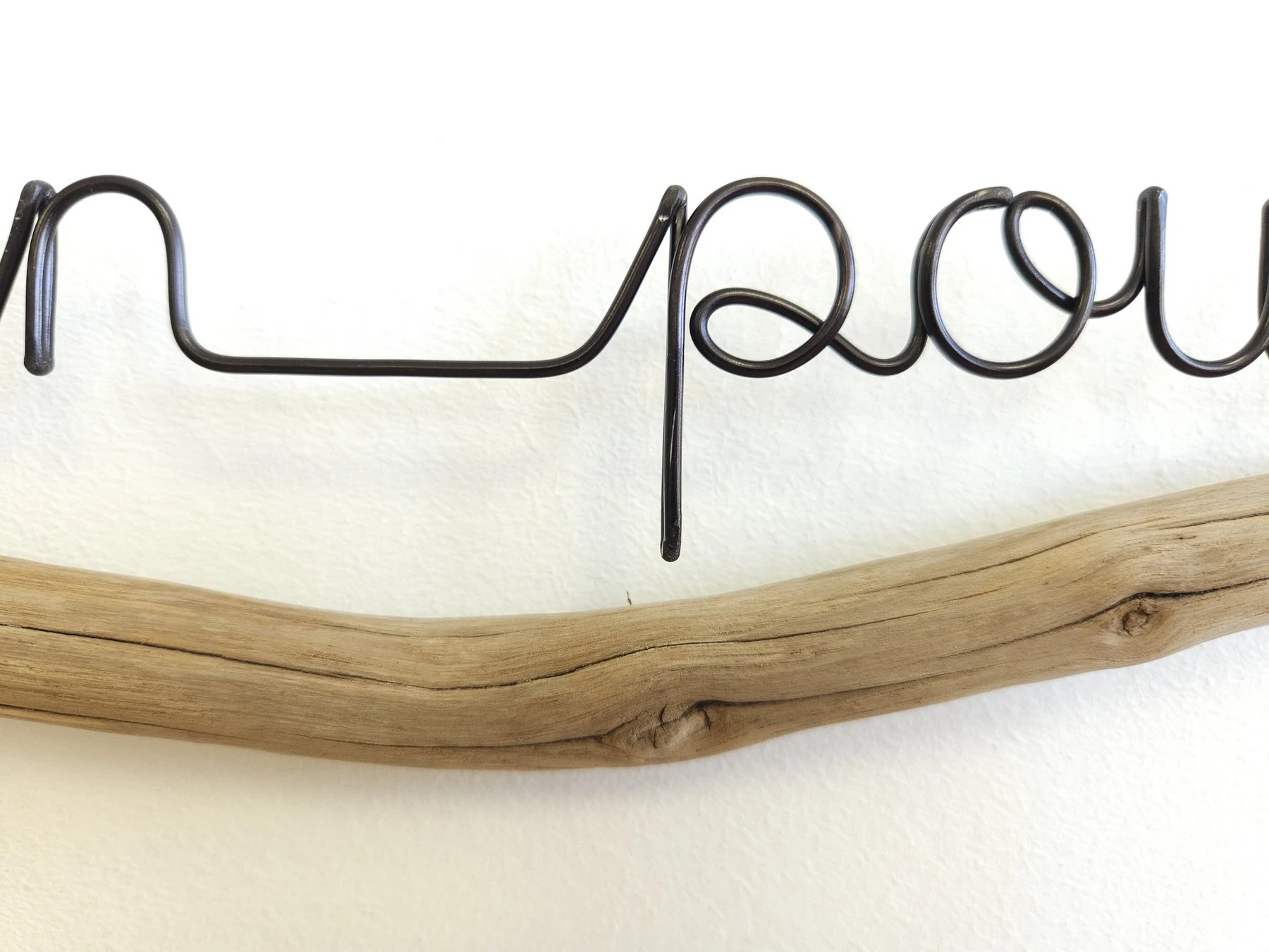 J’ai choisi une jolie branche de vieux châtaignier pour s’adapter à la phrase. Le châtaignier a cet aspect un peu bois flotté une fois nettoyé et sec, j’adore !